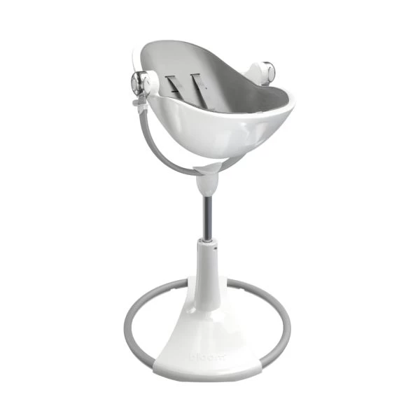De stralend witte Bloom Fresco Chrome Wit / Snakeskin Grey Compleet is voorzien van vrolijk gekleurde bekleding in een kleur die jij zelf bepaalt. Zo heb je altijd een kinderstoel die een goede match is met jouw interieur.