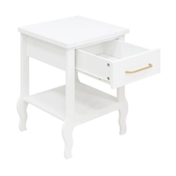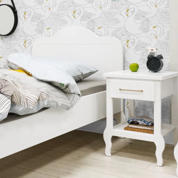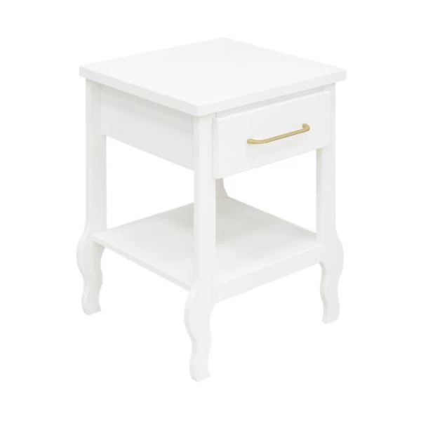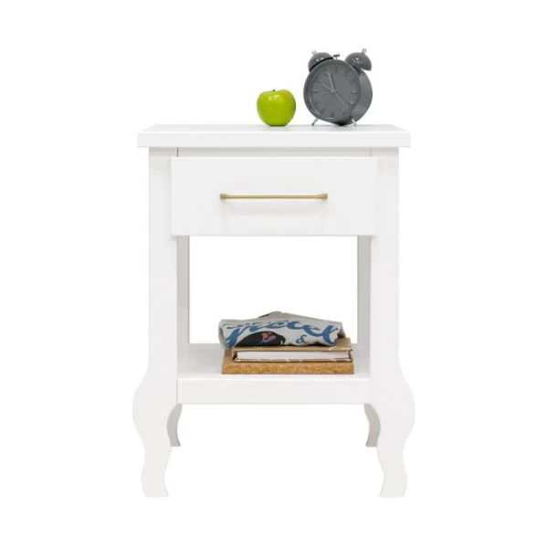 Het Bopita Elena Nachtkastje Wit beschikt over voldoende opbergruimte: een lade en een plank. De lade is voorzien van een dun, mat gouden handvat. Verder is het nachtkastje gemaakt van hoogwaardig MDF materiaal en voorzien van een stijlvol design. Perfect te combineren met andere producten van de Elena serie van Bopita.