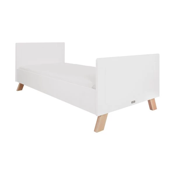 Het Bopita Lisa Bed Wit / Naturel kenmerkt zich aan de combinatie van wit en blank beukenhout. Daarnaast zijn het de schuine poten onder het bed waardoor er een Scandinavische look ontstaat. In het hoofdbord en voetenbord bevinden subtiele groeven wat net het geheel iets breekt. Het bed wordt inclusief een lattenbodem geleverd.