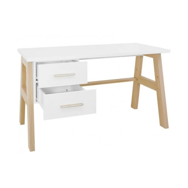 De Bopita Lisa Bureau Wit / Naturel heeft een bijzondere uitstraling en is gemaakt van kwalitatief MDF in combinatie met beukenhout. De schuine beuken poten geven dit bureau een speciale look. Onder het bureau zitten twee opberglades waardoor je het bureau altijd opgeruimd kan houden.