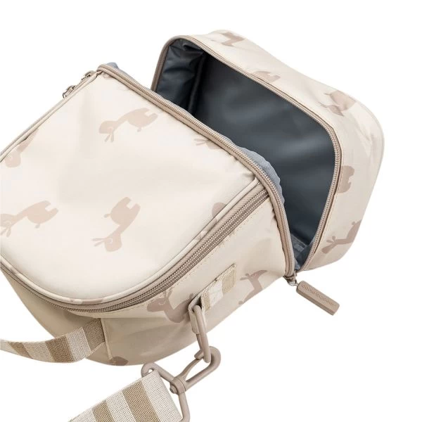 De stijlvolle Done By Deer Lalee Thermo Rugzak – Sand is perfect om eten en drinken mee te nemen voor onderweg en dit warm of koud te houden wanneer je erop uit gaat met je kindje. De tas heeft twee vakken en een verstelbare schouderband. Daarnaast is de tas gemakkelijk te openen door middel van de twee ritsen. Verder is de schattige rugzak gemaakt van 100% polyester met isolatiestof aan de binnenkant. De duurzame en weerbestendige stof is gemakkelijk schoon te maken met een vochtige doek.
