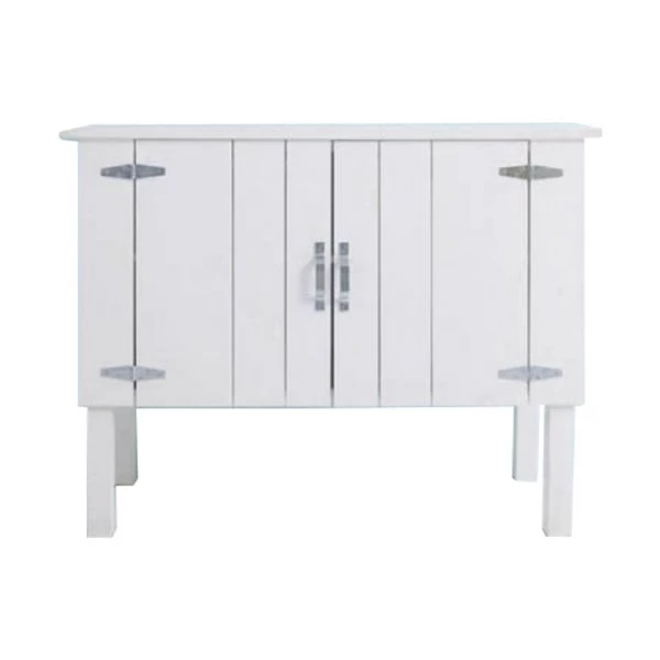 De commode Montana is prachtig vormgegeven met verticale planken die in breedte van elkaar verschillen. De ontwerpers hebben ervoor gekozen om de scharnieren niet – evenals het hout – wit te maken. Dit zorgt voor een verrassend effect. Dankzij de hoge poten is er onder de commode nog voldoende ruimte over om spullen neer te zetten