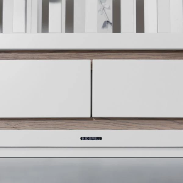 Je kindje zal heerlijk wegdromen in het Kidsmill Accent Wit Babybed 60 x 120 cm. Het bed is gemaakt van hoogwaardig materiaal en past perfect in een moderne kinderkamer. Aan opbergruimte is ook gedacht, want onder het bed zijn er twee lades die gemaakt zijn van MDF materiaal. Het bed heeft lades zonder grepen en onder en boven de lades mooie fineer accenten, dit alles maakt het tot een stijlvol geheel maakt. Bij het bed wordt een lattenbodem geleverd die verstelbaar is in drie standen. Wanneer je kindje uit zichzelf kan draaien is het verstandig om het bed op de laagste stand te zetten zodat hij of zij niet uit het bed kan rollen.
